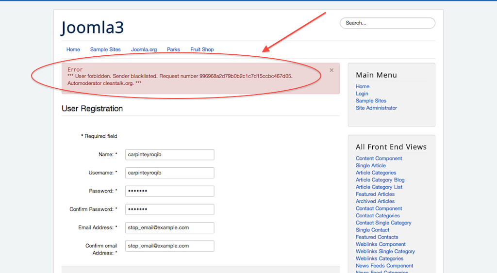 CleanTalk Anti-Spam set up on Joomla 2.5